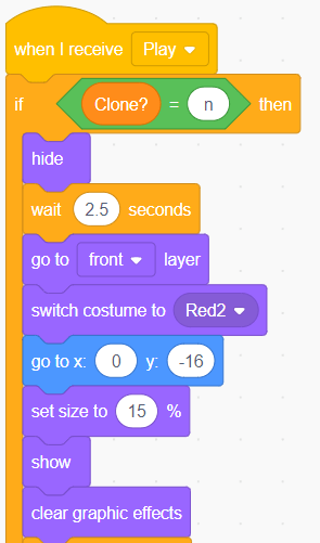 First, in a code segment of “When I receive Play”, the program creates clone every 2 seconds.