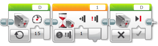 In this segment, the robot will move to the target object first. Since the program has adjusted its direction in “Minor Adjustment” block and assumes that the robot is facing the target straight, it sets both motors to the same power of 30 and goes straight toward the target. The travelling distance is calculated by using the formula (distance variable – 3) / 19. “-3” is used to compensate the distance difference between ultrasonic sensor’s position and motor’s position. “19” is the perimeter of the wheels. This formula changes the distance into the rotation count of the wheels and acts as an input to the “Move Tank” block.