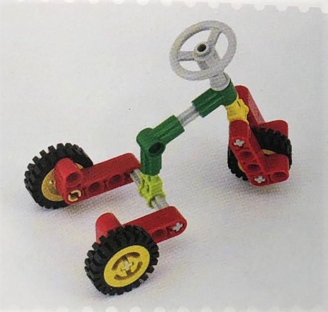 It is a simple tricycle model and it is even not connected to smart hub or motors, but we are interested in how the model could steer simply through mechanical design. Furthermore, it is the first time Ray tries to build tricycle. So we begin our mission.
