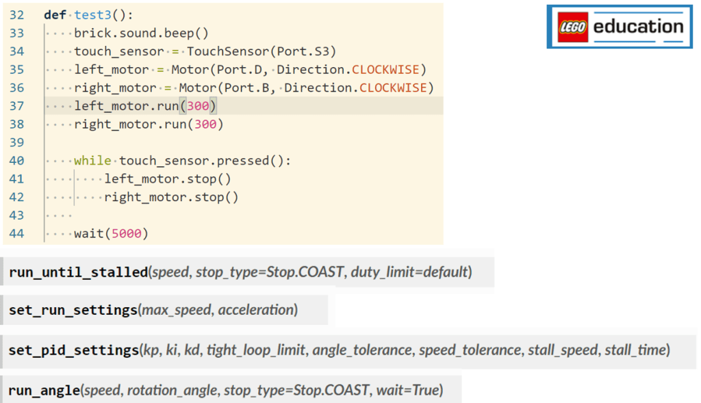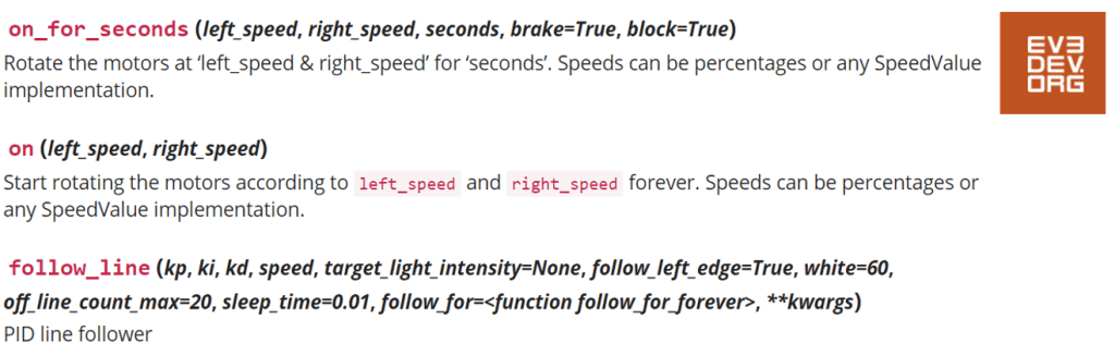 As to sensors, my opinion is the same. Unless that you want to get/set complicated data from your sensors, those existing methods offered by EV3 MicroPython are generally enough for beginners. After all, the purpose of LEGO EV3 not only focuses on programming, but also emphasis on the mechanical design and holistic problem solving skills.
