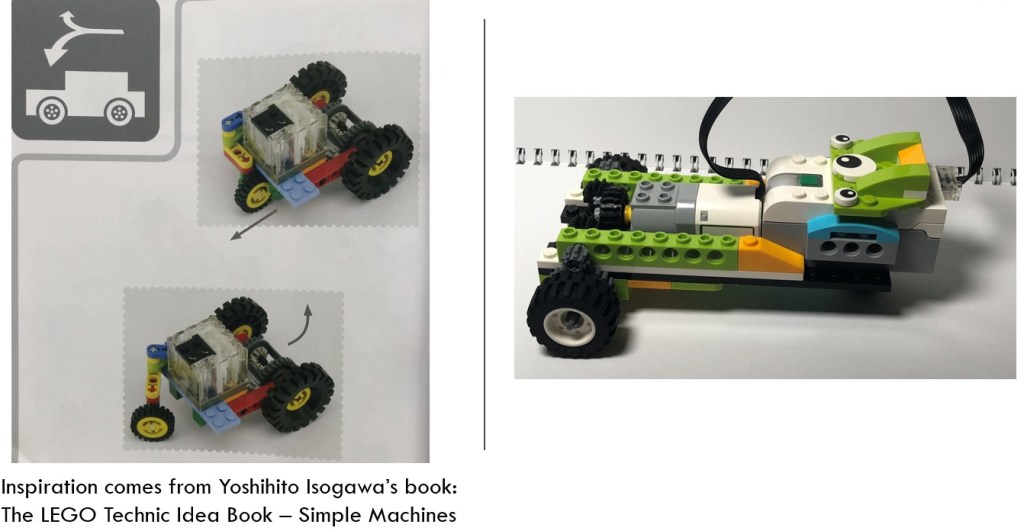 The inspiration comes from Yoshihito Isogawa’s book: The LEGO Technic Idea Book – simple machines. The author Yoshihito Isogawa wrote a series of LEGO idea books. My previous posts of Crane Model and Tricycle Model are both inspired by these books.