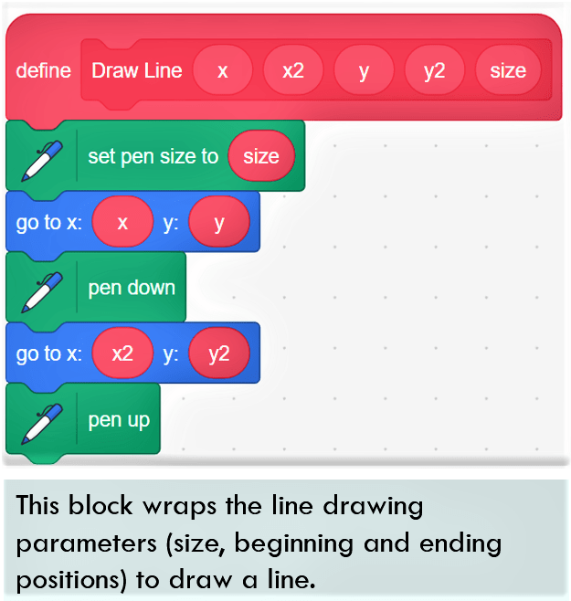 “Draw Line” block used in the above code segments is easy to be understood. It just wraps the starting and ending coordinates and size value of a line. Please note that white line is usually a bit wider than red and green lines, so that you could feel like the green or red “blood” filled in the white tube.