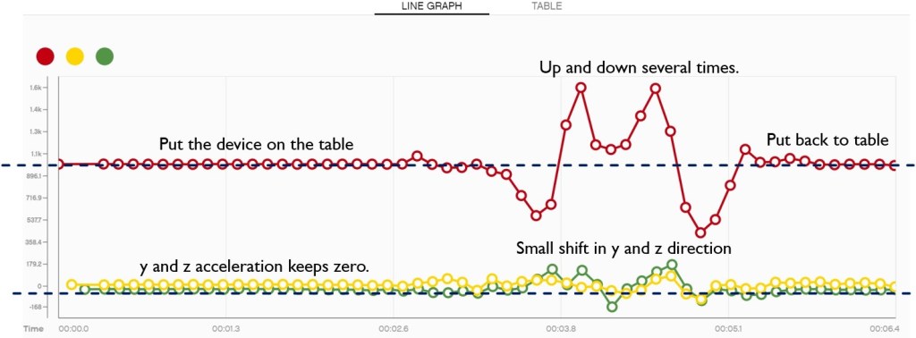 Now you have understood the raw data of accelerometer, the effect of sensor orientation and the units of graph, we could start to explain the code segments one by one.