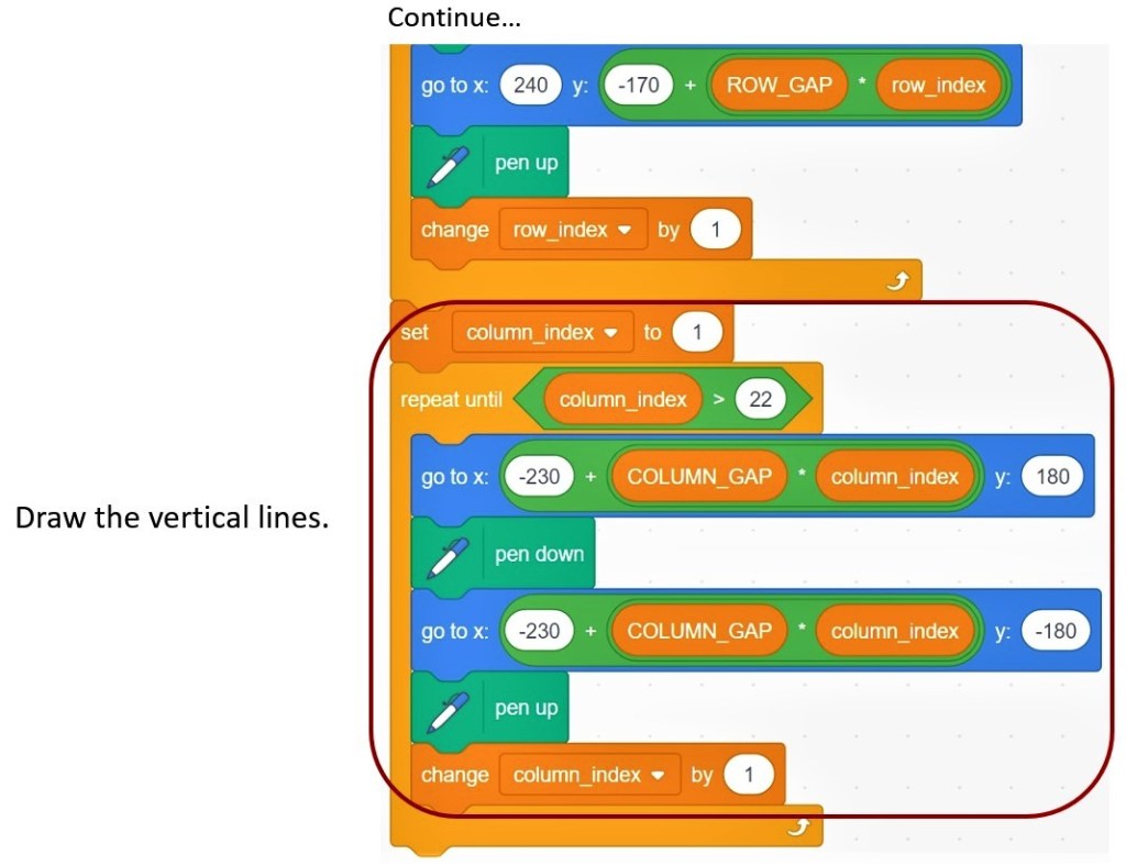 After setting the above variables, the program sets pen properties and then begins drawing horizontal lines and vertical lines.