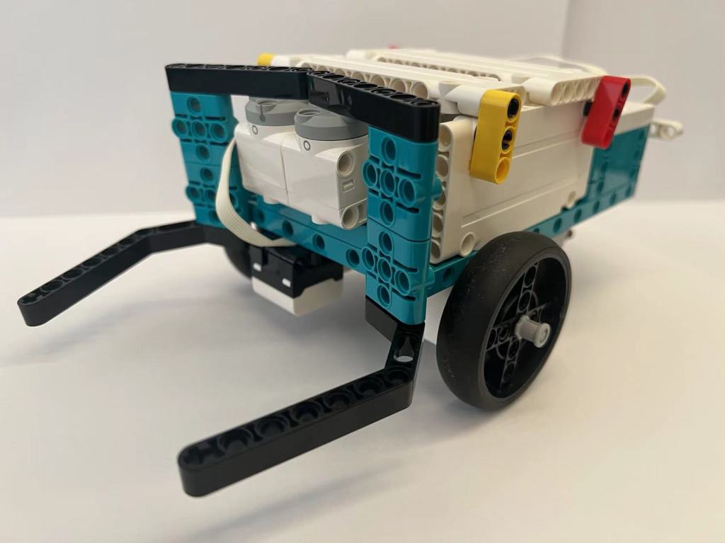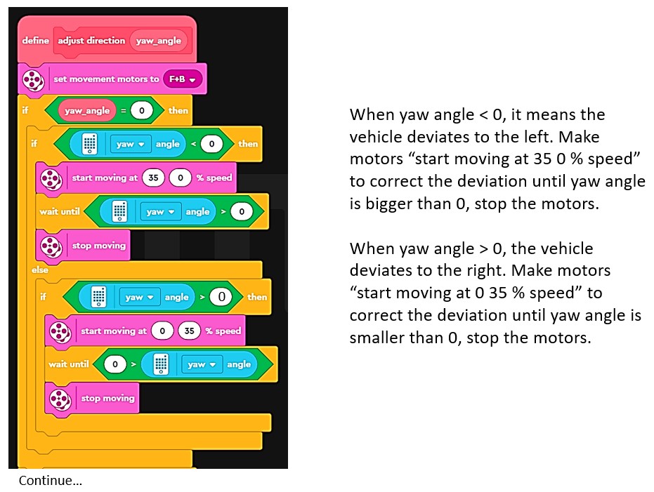 The other challenge is how to keep correct direction. Compared to previous LEGO MindStorms EV3 model, the motors of LEGO MindStorms Inventor are much less powerful, so it is easier for the motors to skid on the ground and deviate the predefined direction. Even the program sets both motor pair move at the same speed, it could not ensure the vehicle move forward straight.