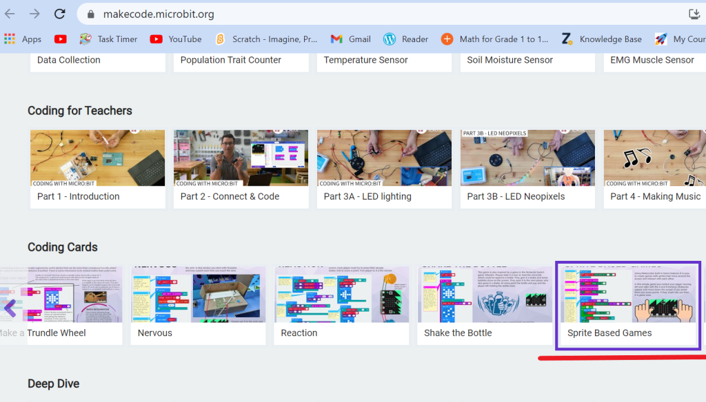 https://makecode.microbit.org/. It is located in the Coding Cards section.